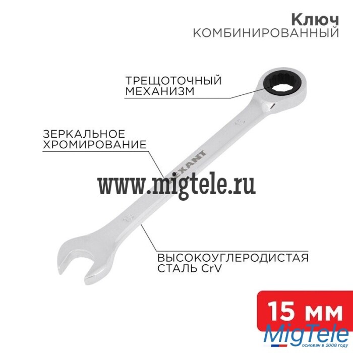 Описание Rexant 12-5810-1 Ключ комбинированный трещоточный 15 мм