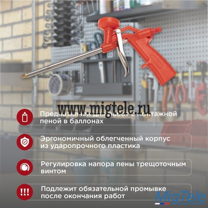 Описание Rexant 12-7303 Пистолет для монтажной пены пластиковый