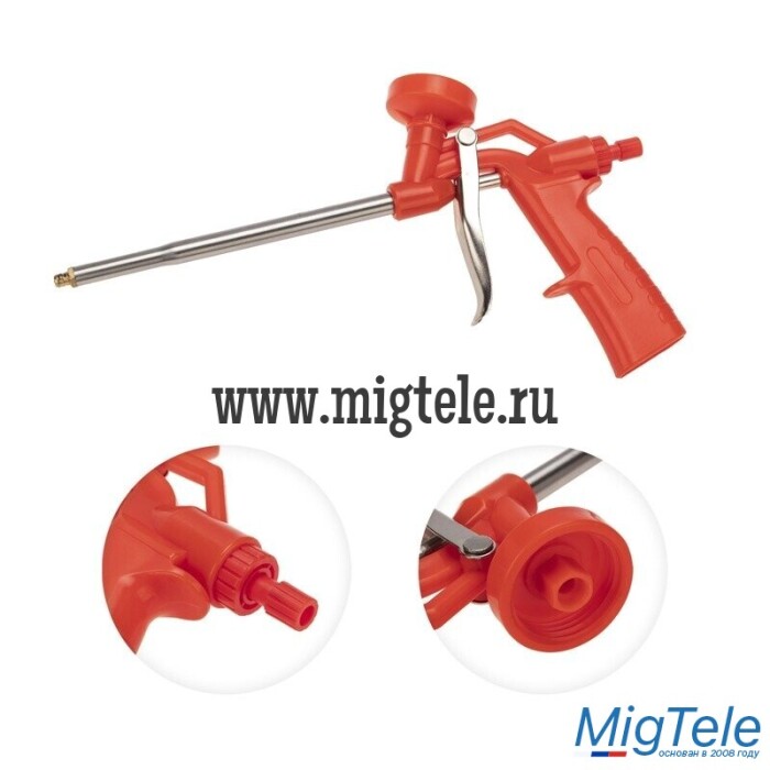 Пистолет REXANT предназначен для работ с монтажной пеной в баллонах, имеющих резьбовой соединитель. Используется для герметизации швов, трещин, стыков, проемов и пр.