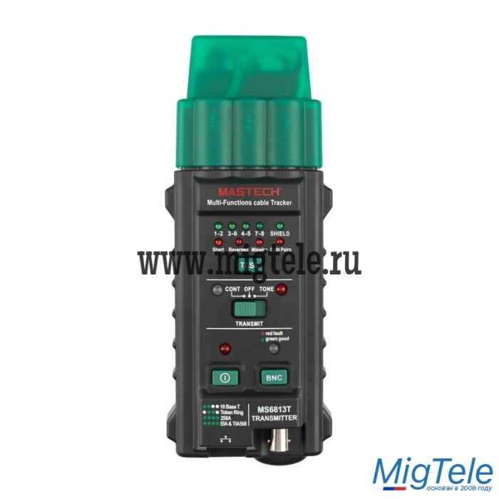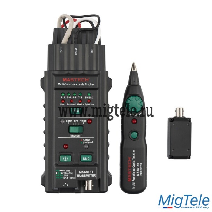 Трассоискатель MASTECH MS6813T — универсальный прибор с большим количеством функций. Предназначен для обнаружения скрытой проводки, как рабочей, так и поврежденной, экранированной и неэкранированной витой пары, проверки коаксиального кабеля, тестирования телефонной линии и LAN кабеля, проверки целостности и конфигурации сети, выявления замкнутых и разомкнутых кабелей, выявления разрывов цепи и коротких замыканий. Прибор обладает выдающимся функционалом и будет полезен как профессиональным строителям и рабочим, так и любителям, за счет простого и понятного управления и отсутствия необходимости в настройке.
