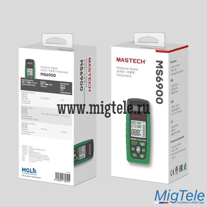 Профессиональный цифровой влагомер MASTECH MS6900 позволяет измерять содержание влаги в древесине, стройматериалах, хлопке, бумаге, табаке и т. д.