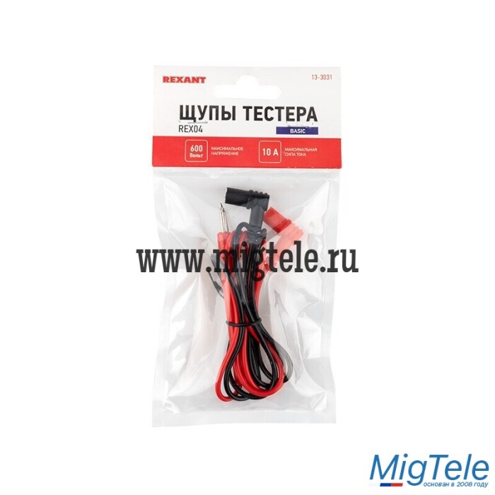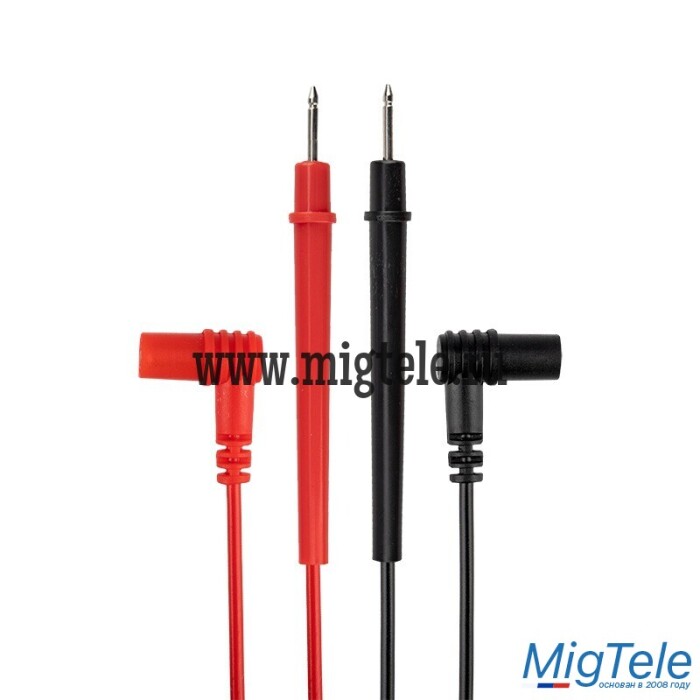 Щупы REX04 REXANT для тестера и токовых клещей. Они подсоединяются к гнездам мультиметра, для удобства имеют разные цвета: черный и красный. Как правило, черный щуп подключается на общее гнездо, а красный — на гнездо «+». Клеммы, провода и ручки щупов надежно изолированы для защиты пользователя от поражения электрическим током. Для удобства работы металлические концы щупов заострены.