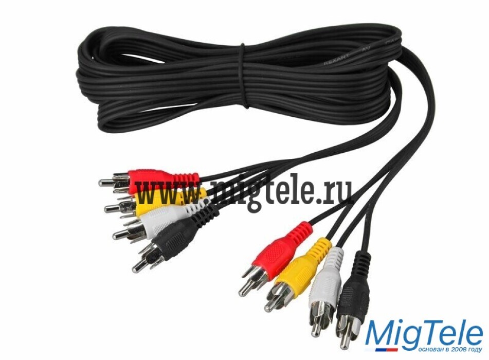 С обеих сторон соединительного шнура располагаются по четыре штекера разъема RCA (традиционный стандарт для аналоговой видео- и аудиотехники), что расширяет возможности его использования.