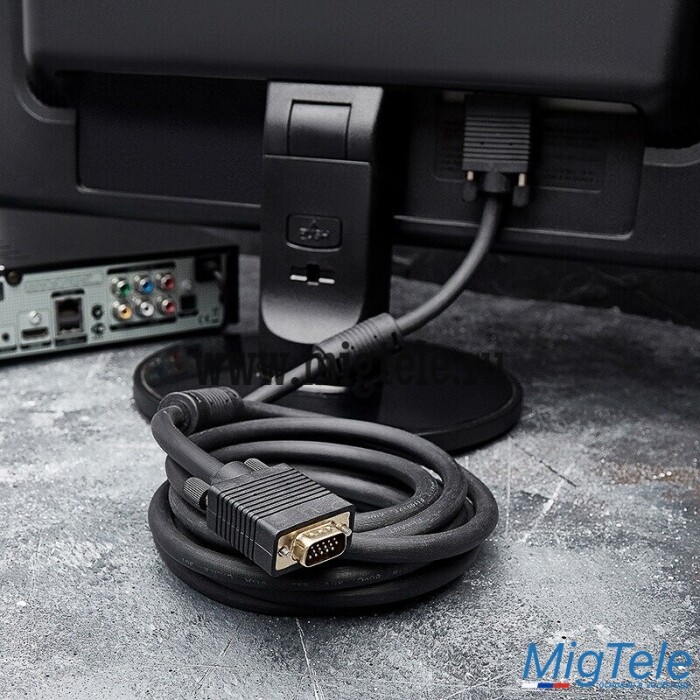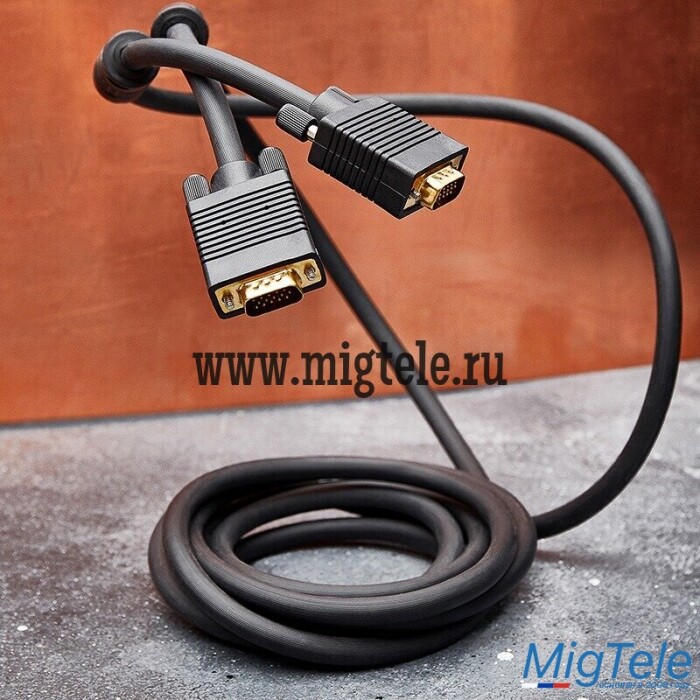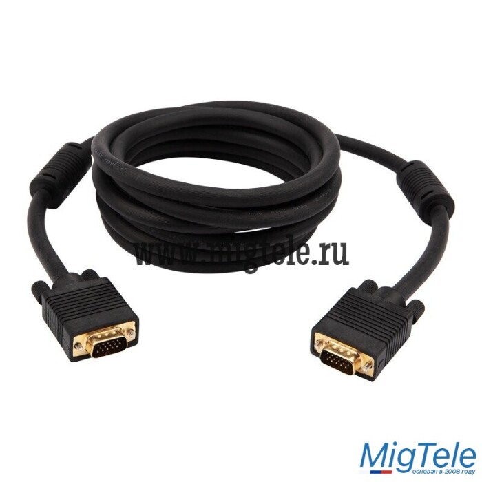 Шнур VGA plug - VGA plug 3 м gold с ферритами REXANT предназначен для передачи аналогового видеосигнала. Используется для совместной работы устройств, имеющих разъемы VGA: компьютер, ноутбук, монитор, плазменный и ЖК телевизор, AV ресивер, проектор и т.п. С обеих сторон располагаются штекеры разъема VGA (англ. Video Graphics Array).