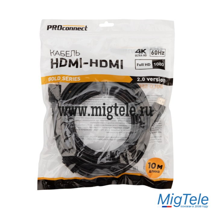 Кабель PROconnect HDMI - HDMI 2.0 предназначен для передачи цифровых видеоданных высокого разрешения и многоканальных цифровых аудиосигналов с защитой от копирования.