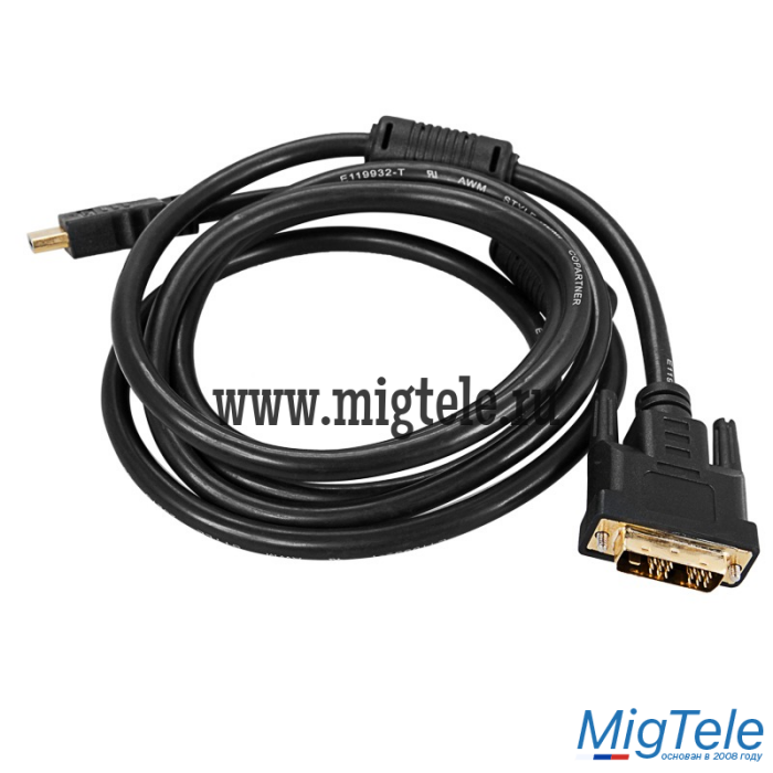 Шнур HDMI - DVI-D gold 2 м с фильтрами REXANT предназначен для передачи цифрового видеоизображения высокого разрешения и многоканального аудио сигнала. Используется для совместной работы устройств, имеющих разъемы DVI-D и HDMI: проекторы, телевизионные аппараты, компьютеры и ноутбуки, мультимедийные проигрыватели и других видеоустройствах. С одной стороны располагается штекер разъема HDMI (High-Definition Multimedia Interface — интерфейс для мультимедиа высокой четкости), а с другой — штекер разъема DVI (Digital Visual Interface, сокр. DVI (англ. цифровой видеоинтерфейс)).