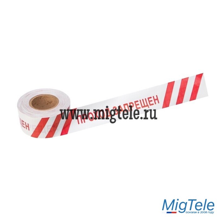 Лента оградительная «Проход запрещен» 75 мм х 250 м REXANT, цвет белый/красный