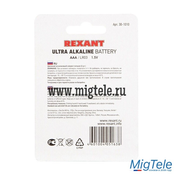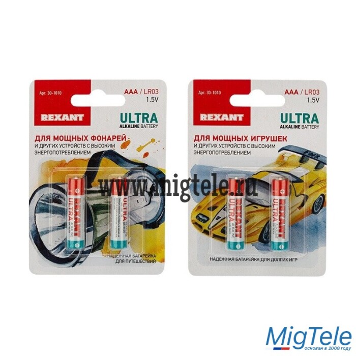 Описание Rexant 30-1010 Ультра алкалиновая батарейка AAA/LR03 1,5 V