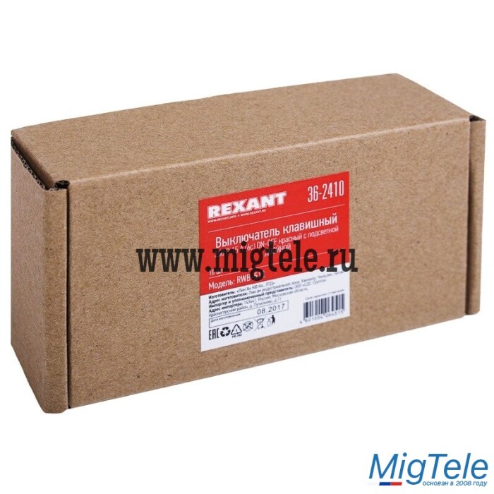 Описание Rexant 36-2410 Выключатель клавишный 250V 15А