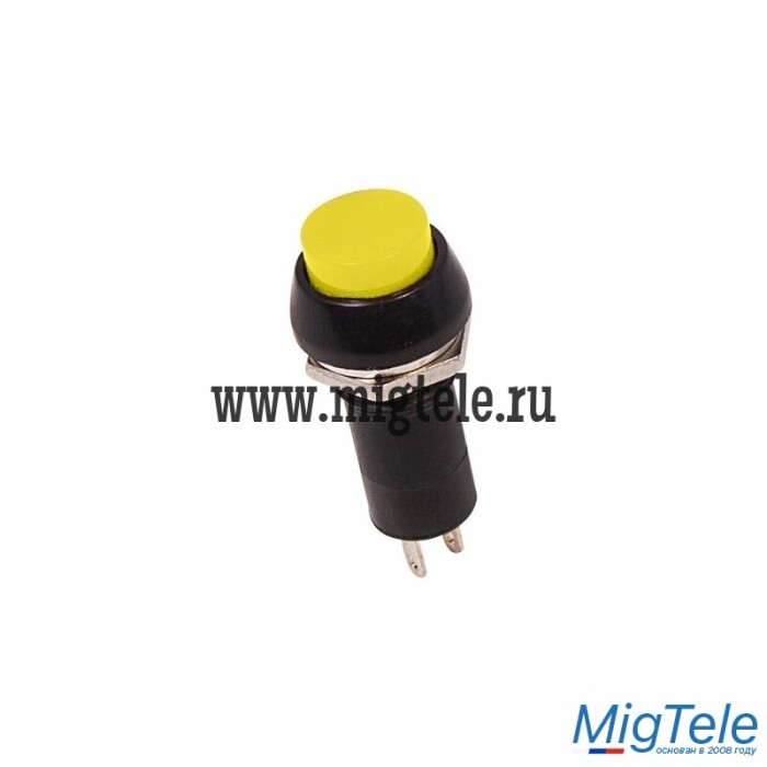 Выключатель-кнопка 250V 1А (2с) ON-OFF желтая предназначена для коммутации электрических цепей переменного тока напряжением до 250В, путем включения-выключения питающего провода. Кнопки применяются в качестве комплектующих изделий различного электрооборудования (в аудио системах, блоках питания, электроустановках на различных производствах, автомобилях, и многих других местах). Разнообразные цветовые варианты исполнения позволяют эффективно комплектовать панели управления. Изделие состоит из двух основных частей - лицевой части (головки) и контактной, и имеет пружинный возвратный механизм. Монтаж осуществляется без применения винтов на плоских панелях толщиной от 0.5мм до 3мм, с помощью гайки. Подключение контактов осуществляется с помощью пайки.