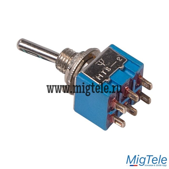 Тумблер 250V 3А (6c) ON-OFF-ON двухполюсный Micro предназначен для коммутации электрических цепей переменного тока напряжением до 250В. Такая разновидность переключателей применяется на лицевых панелях в качестве комплектующих изделий различного электрооборудования (в измерительных приборах, блоках питания, электроустановках на различных производствах, легковых и грузовых автомобилях, поездах и многих других местах). Отличительной особенностью тумблера является перекидной переключатель, принцип действия которого основан на его перемещении в одну из позиций. Для переключения в нужное положение требуется приложить некоторые усилия. Монтаж осуществляется без применения винтов на плоских панелях толщиной от 0.8мм до 3мм. Подключение контактов осуществляется с помощью пайки.