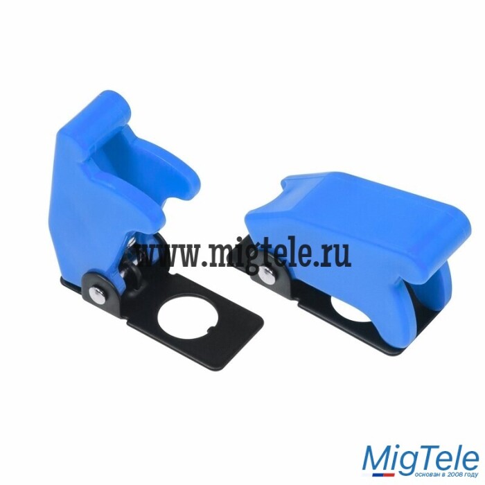 Защитная крышка для тумблеров типа KN и ASW синяя предназначена для защиты от случайной коммутации переключателя во включенное положение. Устанавливается без применения дополнительного крепежа совместно с тумблерами типа KN или ASW на лицевых панелях управления электрооборудованием (в измерительных приборах, блоках питания, электроустановках на различных производствах, легковых и грузовых автомобилях, поездах и многих других местах). Защита тумблера состоит из двух основных частей, соединенных пружинным механизмом: металлической пластины с круглым отверстием (Ø12мм) для установки на переключатель и пластмассовой крышки. Пружинный механизм удерживает крышку в закрытом, либо открытом положении. Для переключения в открытое положение требуется приложить некоторые усилия. Разнообразные цветовые варианты исполнения защитной крышки позволяют эффективно комплектовать панели управления.