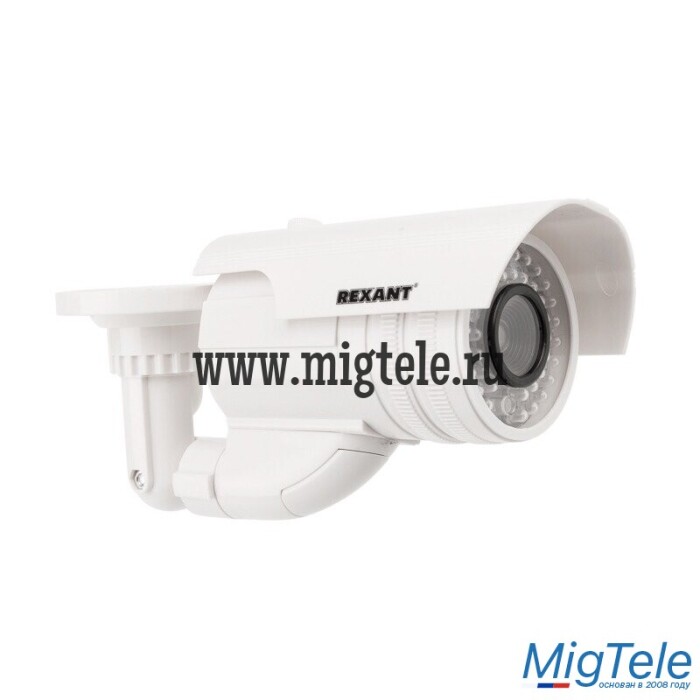 Муляж уличной цилиндрической камеры видеонаблюдения белого цвета с мигающим красным светодиодом неотличим от обычной камеры.
