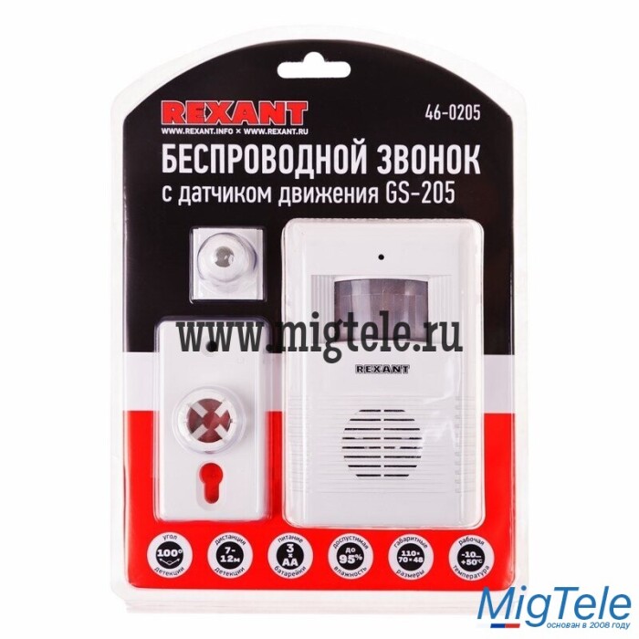 Описание Rexant 46-0205 Беспроводной звонок (модель GS-205)