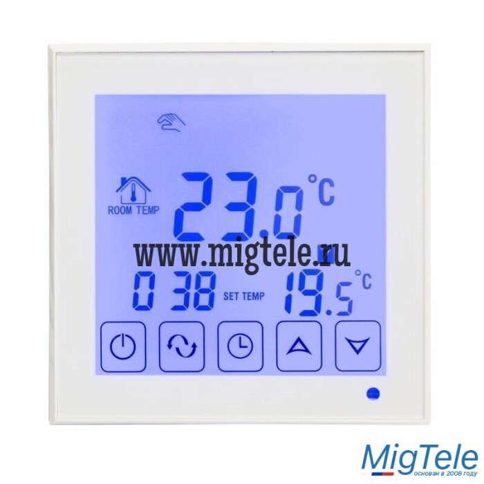 Терморегулятор оснащен большим сенсорным ЖК дисплеем. Есть возможность задавать до 6 временных периодов на каждый день недели, а также выбрать ручной режим управления. С помощью специальных функций двойного контроля и двойной температуры прибор получает данные не только о температуре в помещении, но и о температуре оборудования. Когда температура в системе выше, чем установленная, терморегулятор автоматически остановит нагрев. Такой режим обеспечивает разумное потребление ресурсов и продлевает срок службы системы отопления.