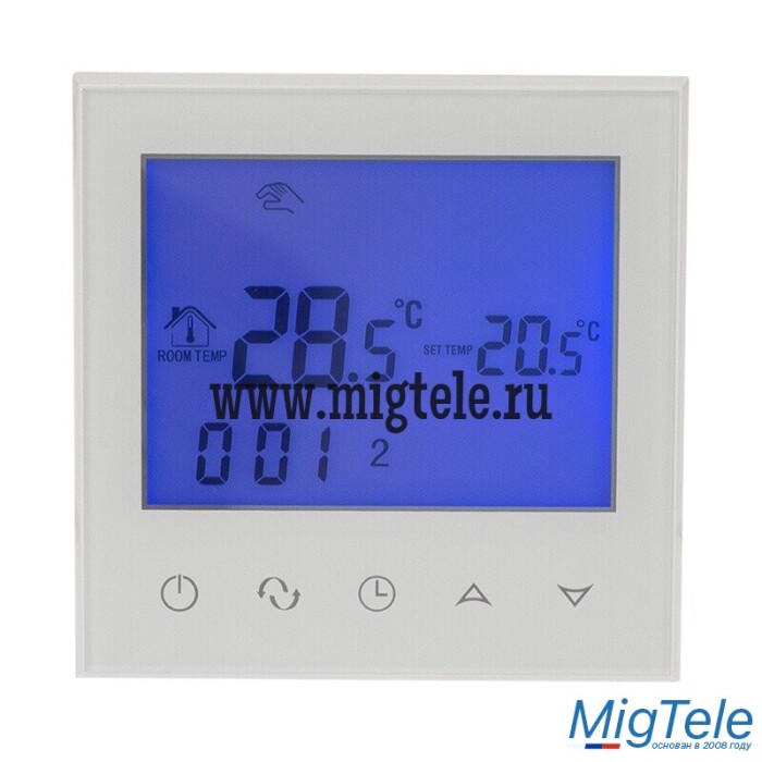 Терморегулятор оснащен ЖК дисплеем. Есть возможность задавать до 6 временных периодов на каждый день недели, а также выбрать ручной режим управления. С помощью специальных функций двойного контроля и двойной температуры прибор получает данные не только о температуре в помещении, но и о температуре оборудования. Когда температура в системе выше, чем установленная, терморегулятор автоматически остановит нагрев. Такой режим обеспечивает разумное потребление ресурсов и продлевает срок службы системы отопления.