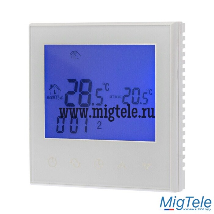 Терморегулятор оснащен ЖК дисплеем. Есть возможность задавать до 6 временных периодов на каждый день недели, а также выбрать ручной режим управления. С помощью специальных функций двойного контроля и двойной температуры, прибор получает данные не только о температуре в помещении, но и о температуре оборудования. Когда температура в системе выше, чем установленная, терморегулятор автоматически остановит нагрев. Такой режим обеспечивает разумное потребление ресурсов и продлевает срок службы системы отопления.