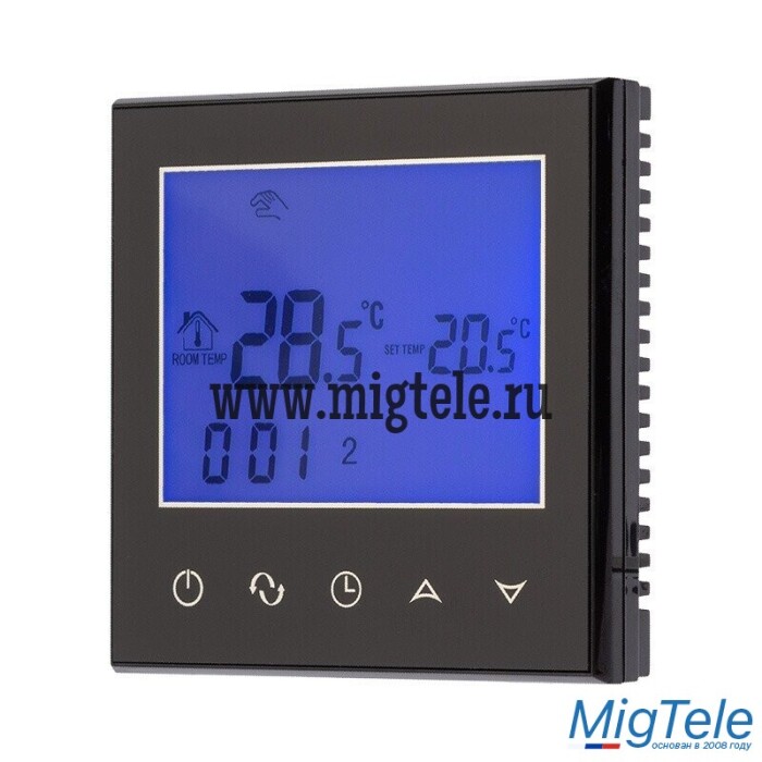 Терморегулятор оснащен ЖК дисплеем. Есть возможность задавать до 6 временных периодов на каждый день недели, а также выбрать ручной режим управления. С помощью специальных функций двойного контроля и двойной температуры, прибор получает данные не только о температуре в помещении, но и о температуре оборудования. Когда температура в системе выше, чем установленная, терморегулятор автоматически остановит нагрев. Такой режим обеспечивает разумное потребление ресурсов и продлевает срок службы системы отопления.