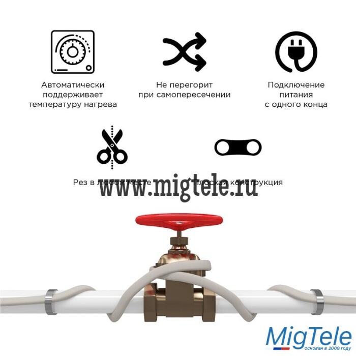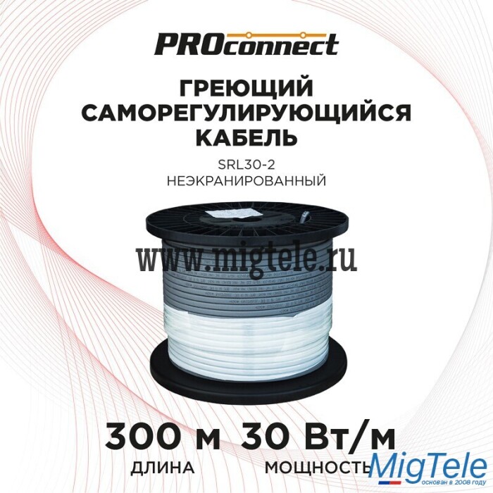 Саморегулирующийся греющий кабель SRL30-2 PROconnect мощностью 30 Вт/м предназначен для защиты от замерзания бытовых трубопроводов диаметром не более 150 мм, счетчиков воды, вентилей и так далее.