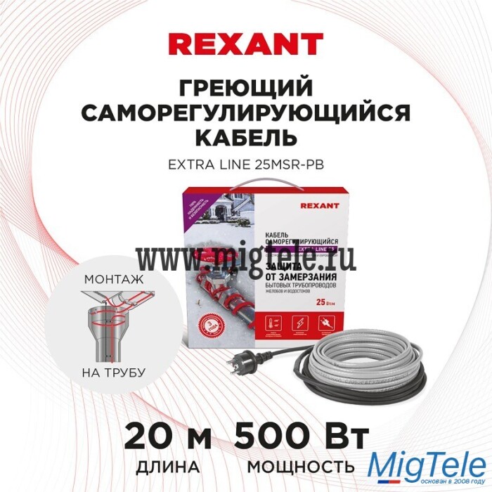 Описание Rexant 51-0647 Кабель греющий саморегулирующийся Extra Line 25MSR-PB