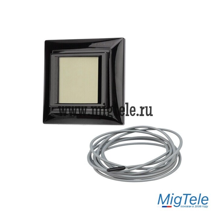 Электронный термостат RX-419BL встраиваемый, сенсорный экран, корпус черный, диапазон регулировок +5...+45 °C, коммутируемый ток контактов 16 A, внешний датчик температуры 10 кОм.