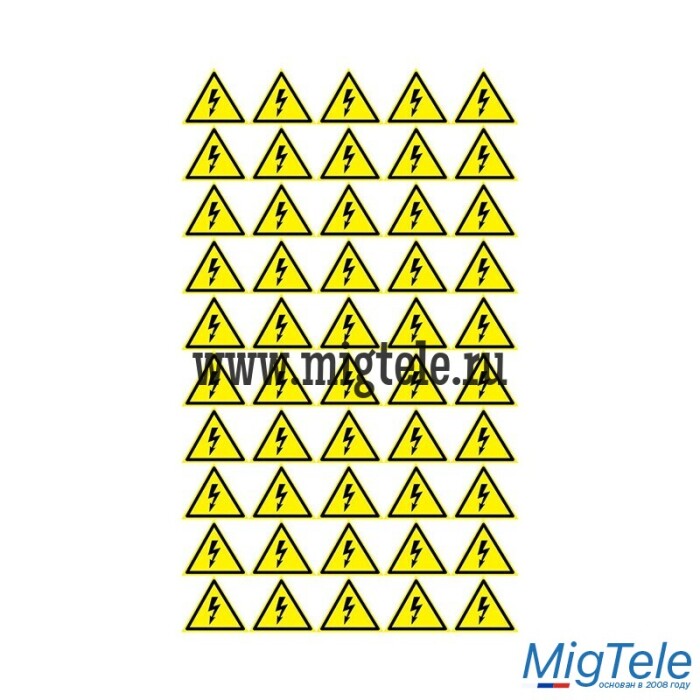 Набор знаков электробезопасности «Опасность поражения электротоком». Данные знаки предназначены для размещения на электрооборудовании и приборах, опорах линий электропередачи, дверцах силовых щитков, на электротехнических панелях и шкафах, а также на ограждениях токоведущих частей оборудования, механизмов, приборов, с целью сообщения об опасности поражения электротоком. Такие наклейки предупреждают и информируют окружающих. Знаки изготовлены на основе самоклеящейся пленки, предназначенной для информационных знаков на улице и в помещениях.