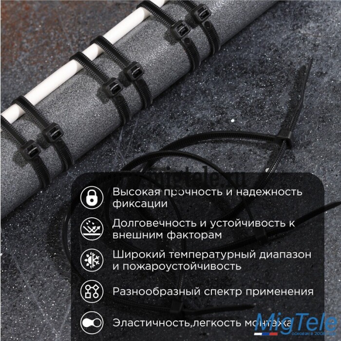 Описание Rexant 57-0401 Хомут-стяжка кабельная 400x4,8мм