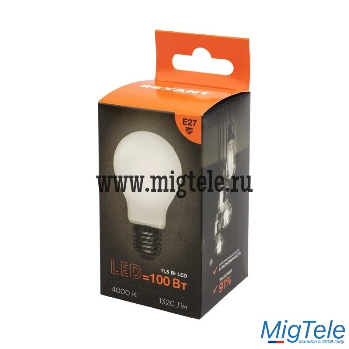 Описание Rexant 604-079 Лампа филаментная Груша A60 11.5 Вт