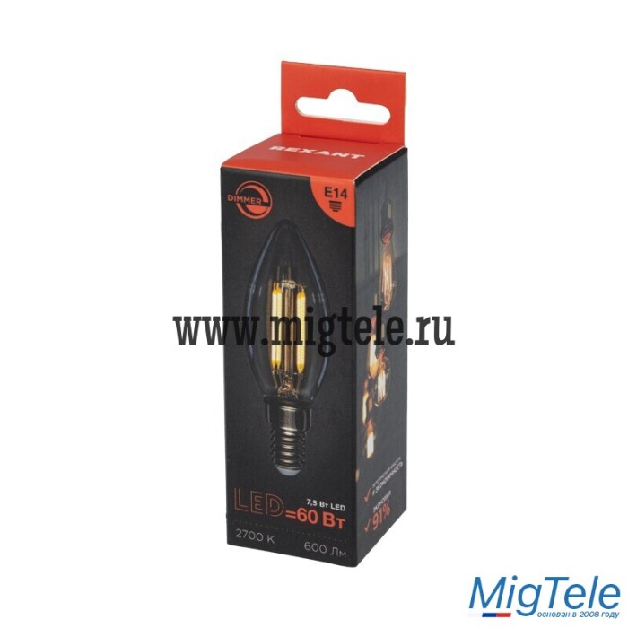 Описание Rexant 604-087 Лампа филаментная Свеча CN35 7.5 Вт