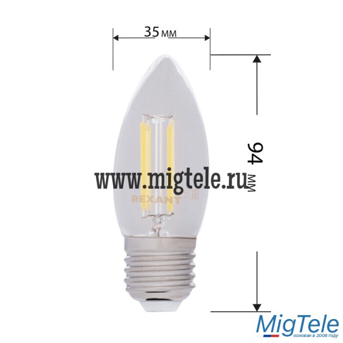 Описание Rexant 604-089 Лампа филаментная Свеча CN35 7.5 Вт
