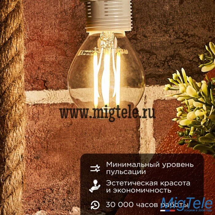 Описание Rexant 604-126 Лампа филаментная Шарик GL45 7.5 Вт