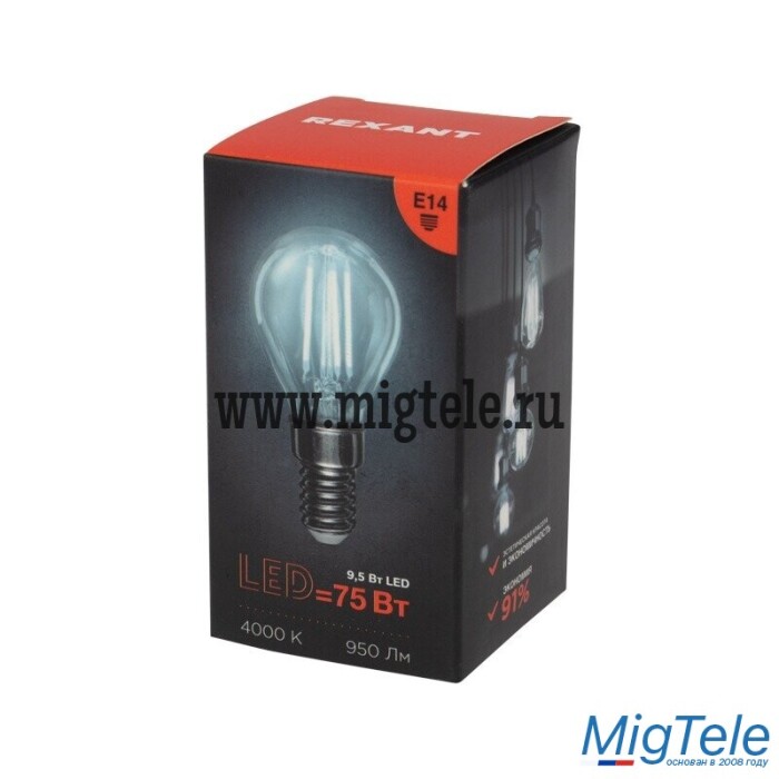 Описание Rexant 604-130 Лампа филаментная Шарик GL45 9.5 Вт