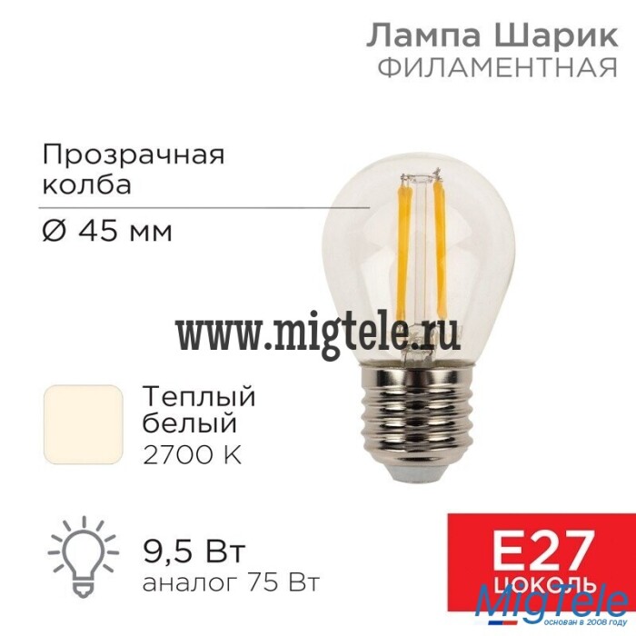 Описание Rexant 604-131 Лампа филаментная Шарик GL45