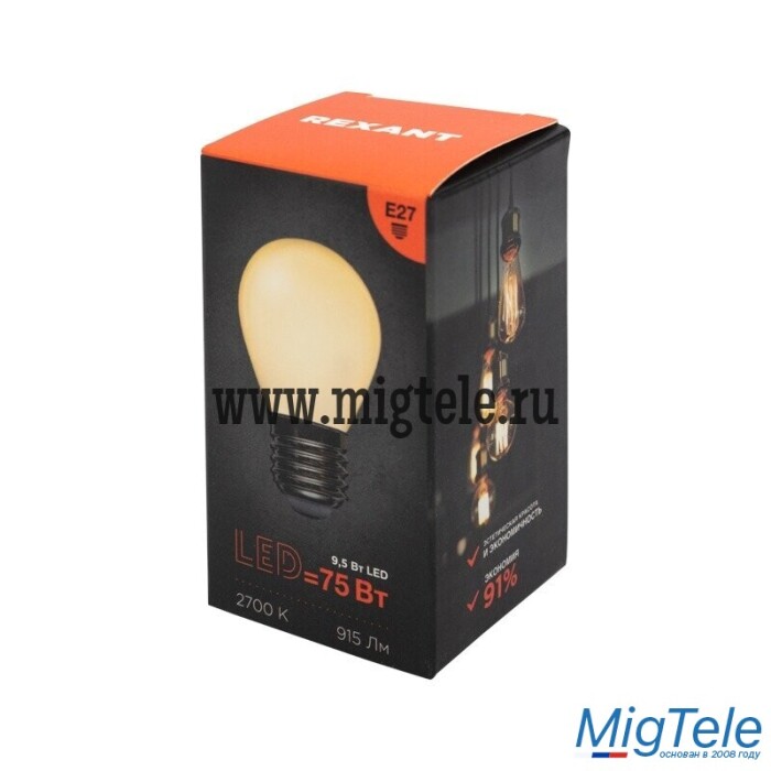 Описание Rexant 604-135 Лампа филаментная Шарик GL45 9.5 Вт