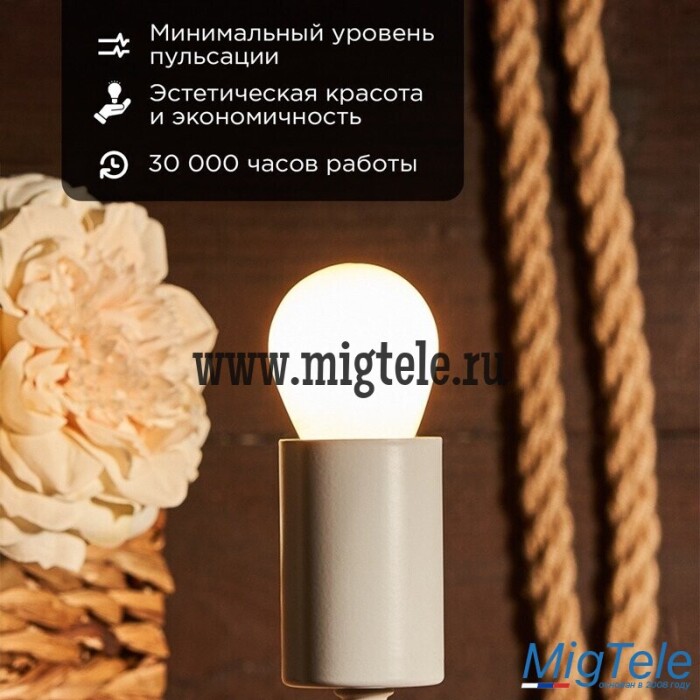 Также лампа равномерно распределяет температуру, благодаря чему не нагревается. Обладает мощностью в 9,5Вт и цоколем Е27.