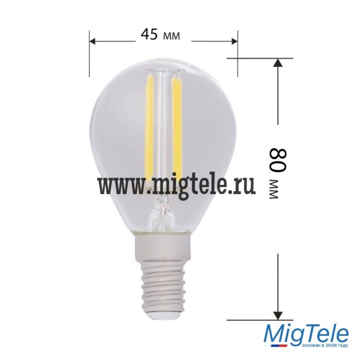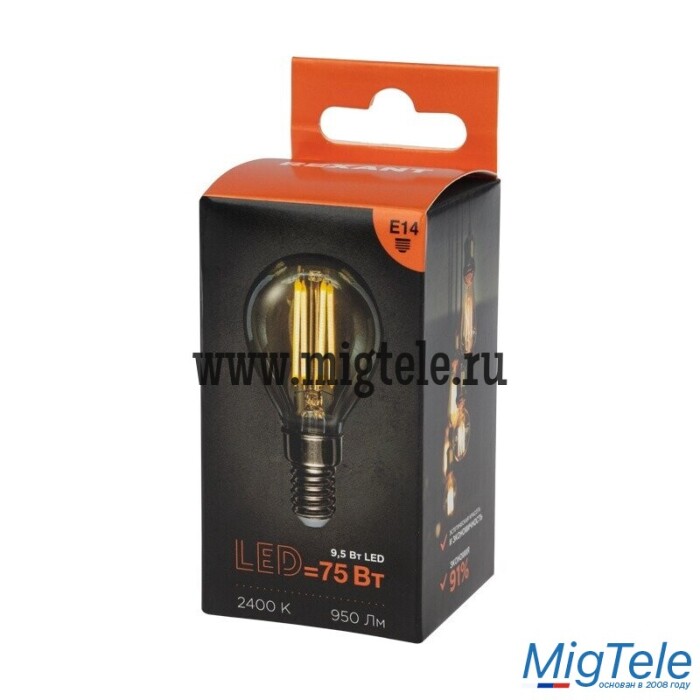 Описание Rexant 604-137 Лампа филаментная Шарик GL45 9.5 Вт