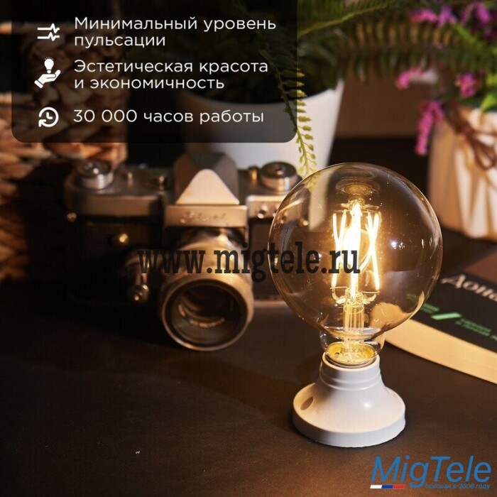 Филаментная лампа REXANT служит одновременно источником искусственного освещения и элементом декора. Используется для освещения комнат, домов, гостиниц, кафе, и других объектов.