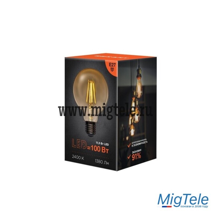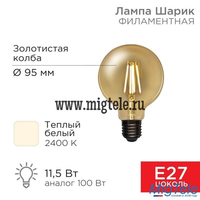Описание Rexant 604-142 Лампа филаментная LOFT GLOBE A95 11.5 Вт