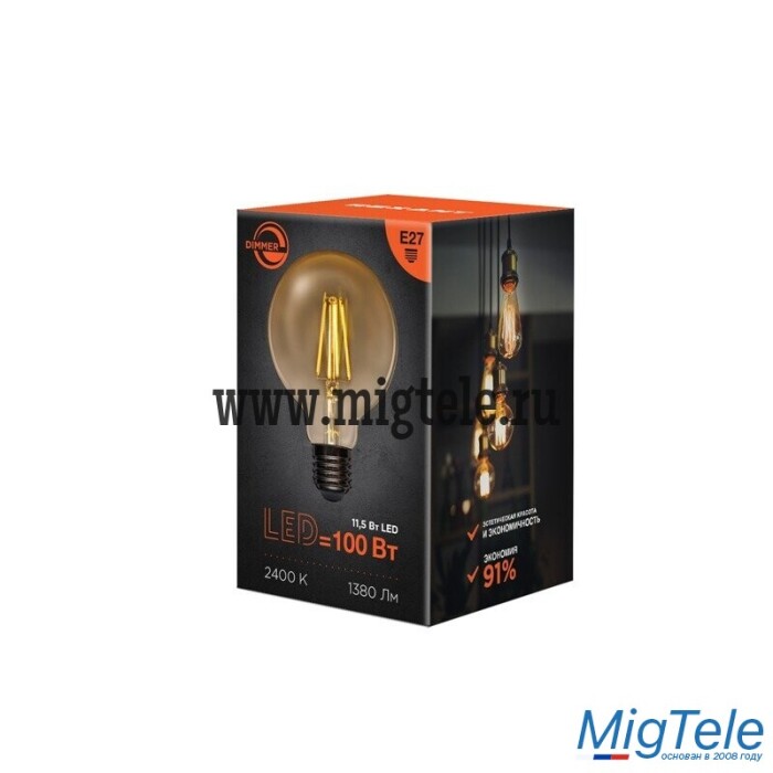 Описание Rexant 604-143 Лампа филаментная LOFT GLOBE A95 11.5 Вт