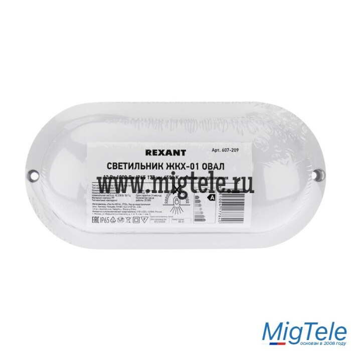 Описание Rexant 607-209 Светильник светодиодный пылевлагозащищенный ЖКХ-01