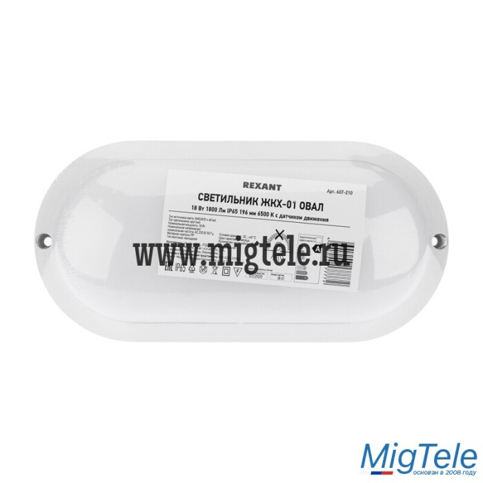 Светильник REXANT серии ЖКХ оснащен источником света типа SMD2835 с номинальной мощностью 18 Вт и световым потоком 1800 Лм.