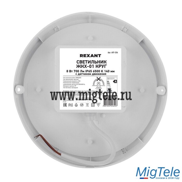 Светильник REXANT серии ЖКХ оснащен долговечным светодиодным источником света номинальной мощностью 8 Вт и световым потоком 700 Лм.