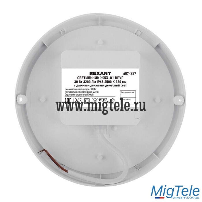 Светильник REXANT серии ЖКХ оснащен долговечным светодиодным источником света номинальной мощностью 30 Вт и световым потоком 3200 Лм.