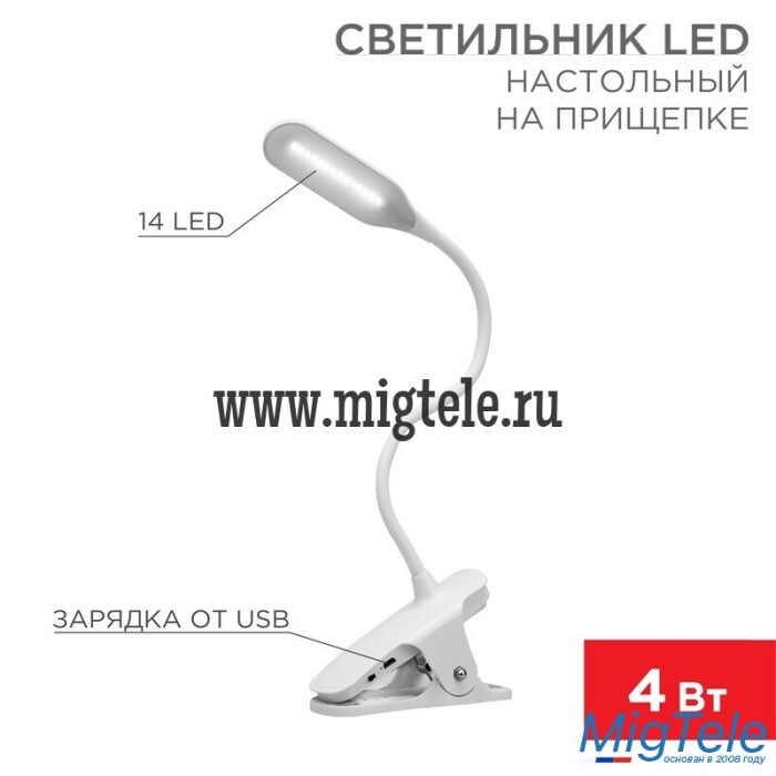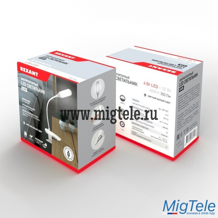 Описание Rexant 609-001 Светильник LED настольный Click 4 Вт