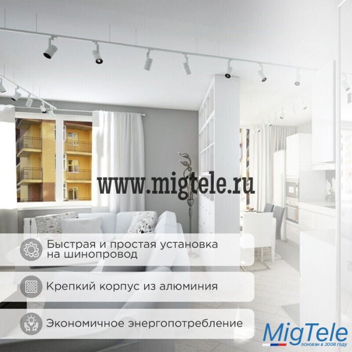 Светильник быстро и просто устанавливается на шинопровод. При необходимости его в любой момент можно заменить, переставить или повернуть в другую сторону.