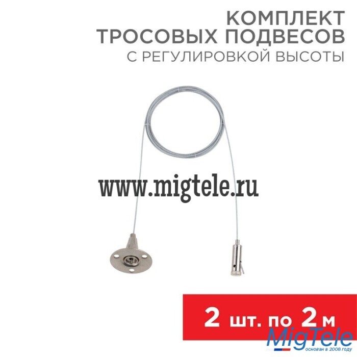Комплект тросовых подвесов для светильников и шинопровода REXANT с регулировкой высоты, 2 м (2 шт.)