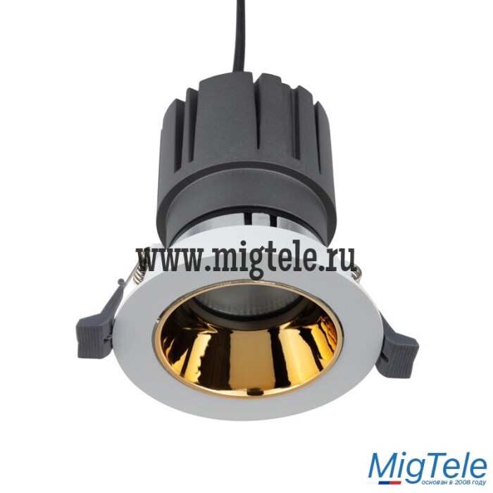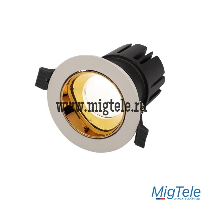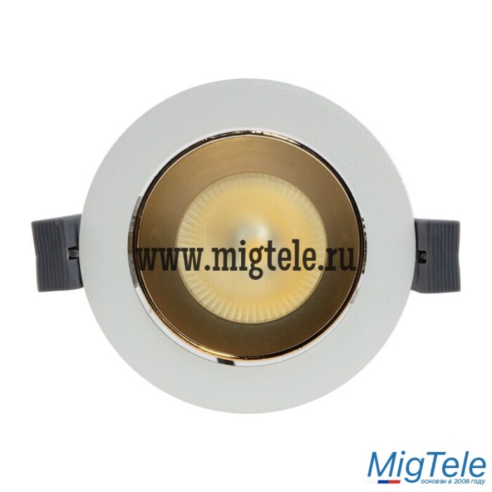 Глубокая декоративная рамка золотистого цвета создает большой защитный угол и эффект выключенного источника света.