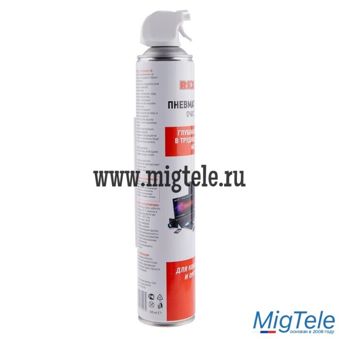 Пневматический очиститель DUST OFF REXANT предназначен для удаления пыли и других загрязнений направленным потоком сжатого воздуха. Разработан и рекомендуется для эффективной бесконтактной чистки чувствительного электронного оборудования и компонентов, устройств обработки данных, персональных компьютеров, экранов, дисплеев, оптических приборов, фотографических материалов, микроскопов и лабораторного оборудования. Используется везде, где необходимо удалить загрязнение и пыль, не оставляя следов, при этом исключая опасность испортить покрытие. С помощью прилагаемой в комплекте трубки мелкие частицы мусора сдуваются направленной струей газа. Пневматический очиститель является хорошей альтернативой очищающим средствам на основе растворителей. Распыляя очиститель, баллон следует держать вертикально. После многоразового или продолжительного применения необходимо дать баллону некоторое время для восстановления внутреннего давления. Во избежание обморожения частей тела не рекомендуется направлять струю сжатого газа на кожные покровы. Состав газа в баллоне существенно отличается от обычного воздуха, поэтому не рекомендуется вдыхать концентрированные пары аэрозоля.