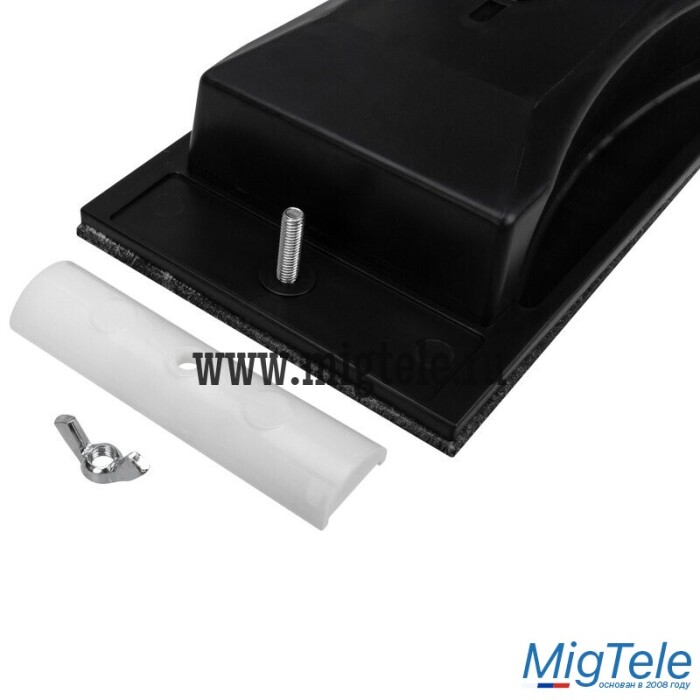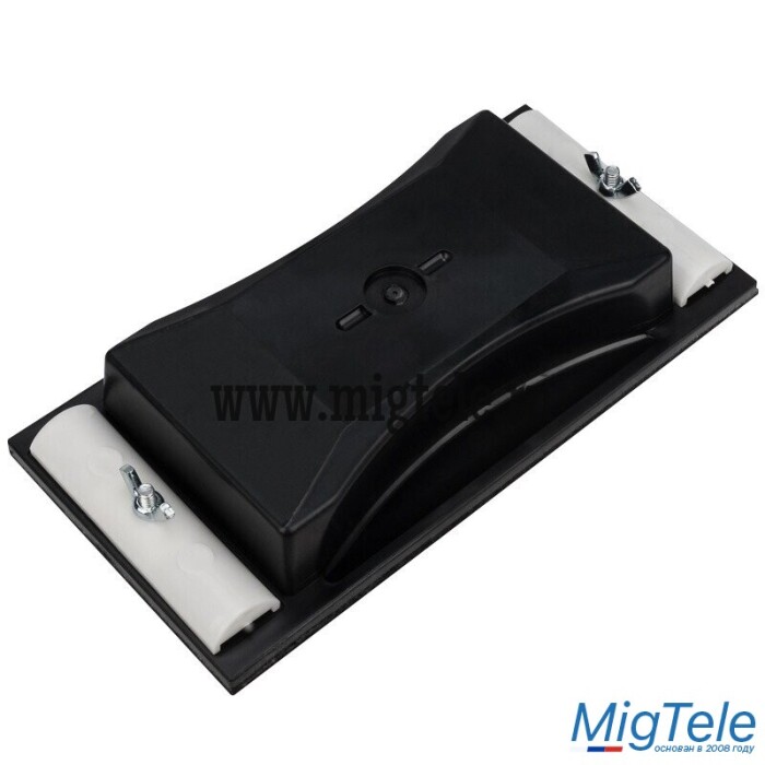Имеет специальное пластиковое крепление на винтах для фиксации шлифовальных листов и абразивных сеток.