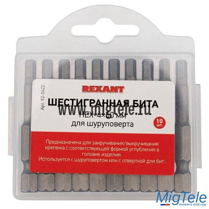 Описание Rexant 92-0422 Бита шестигранная HEX-4*50 мм